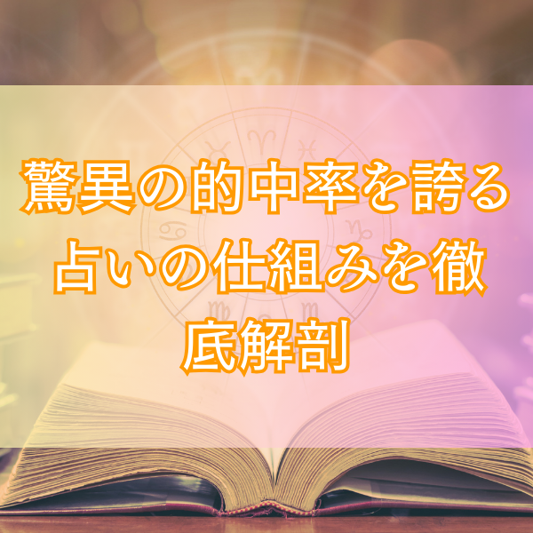 「当たる占い」を探しているあなた。本当に当たる占い師や占術が存在するのか、気になったことはありませんか?実は、占いの世界には高い的中率を実現する仕組みがあり、それを理解することで占いをより効果的に活用できます。本記事では、占いのメカニズ... -